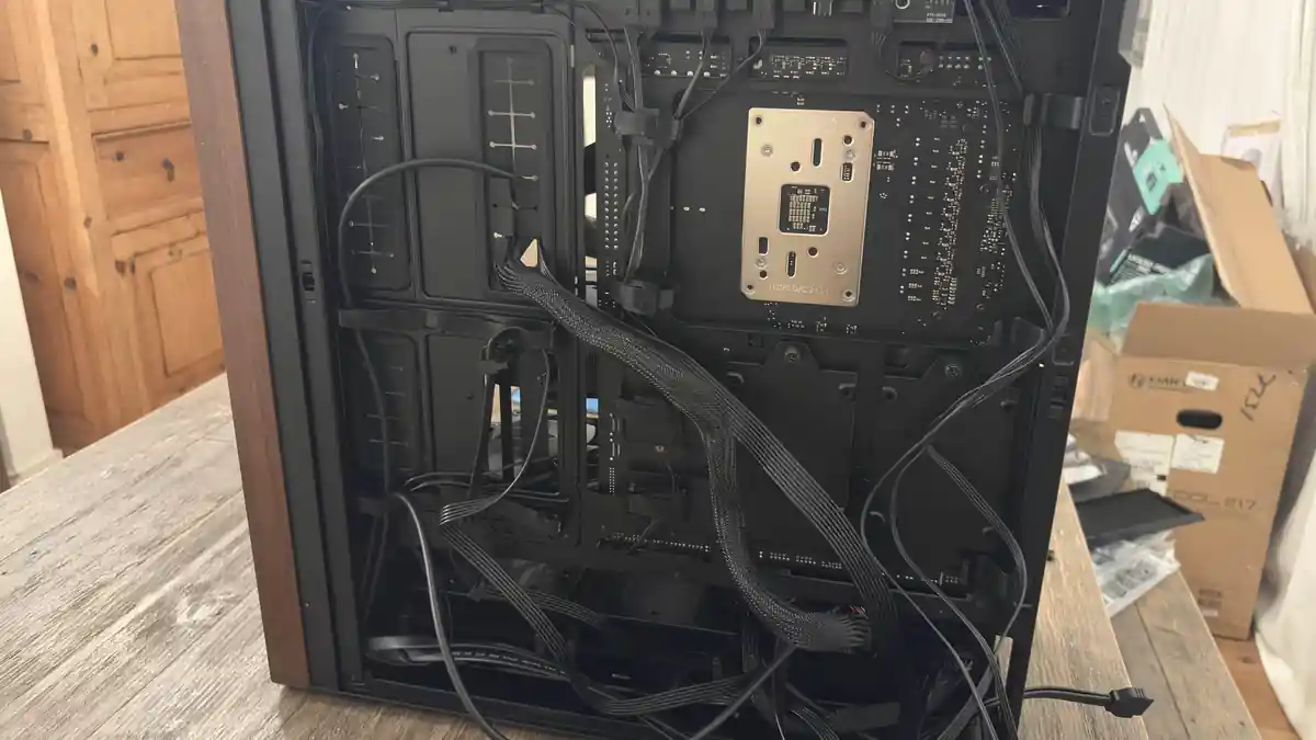 Jusqu’à présent, j’ai installé la RAM (Viper Patriot 64 Go), le SSD (Samsung 990 Pro 2 To), le CPU (AMD Ryzen 7 9800x3d), la carte graphique (PNY 5080 OC), la carte mère (GIGABYTE x870e), l’alimentation (MSI A1000G) et le radiateur liquide (ARCTIC Liquid Freezer II Pro 360). La dernière étape à laquelle je suis actuellement est de brancher les câbles provenant de l’alimentation et de l’armoire (Lian Li Lancool 217) sur ma carte mère, mais comme c’est ma première construction d’ordinateur, je n’ai aucune idée de ce qui se passe, et aucun tutoriel YouTube n’est suffisamment précis pour que je puisse savoir quoi faire. Je vais poster des photos de ma construction jusqu’à présent, avec tous les câbles que je viens d’installer, que je ne sais pas comment utiliser, donc j’espère que quelqu’un pourra les regarder et me dire où j’ai fait une erreur et ce que je dois faire.