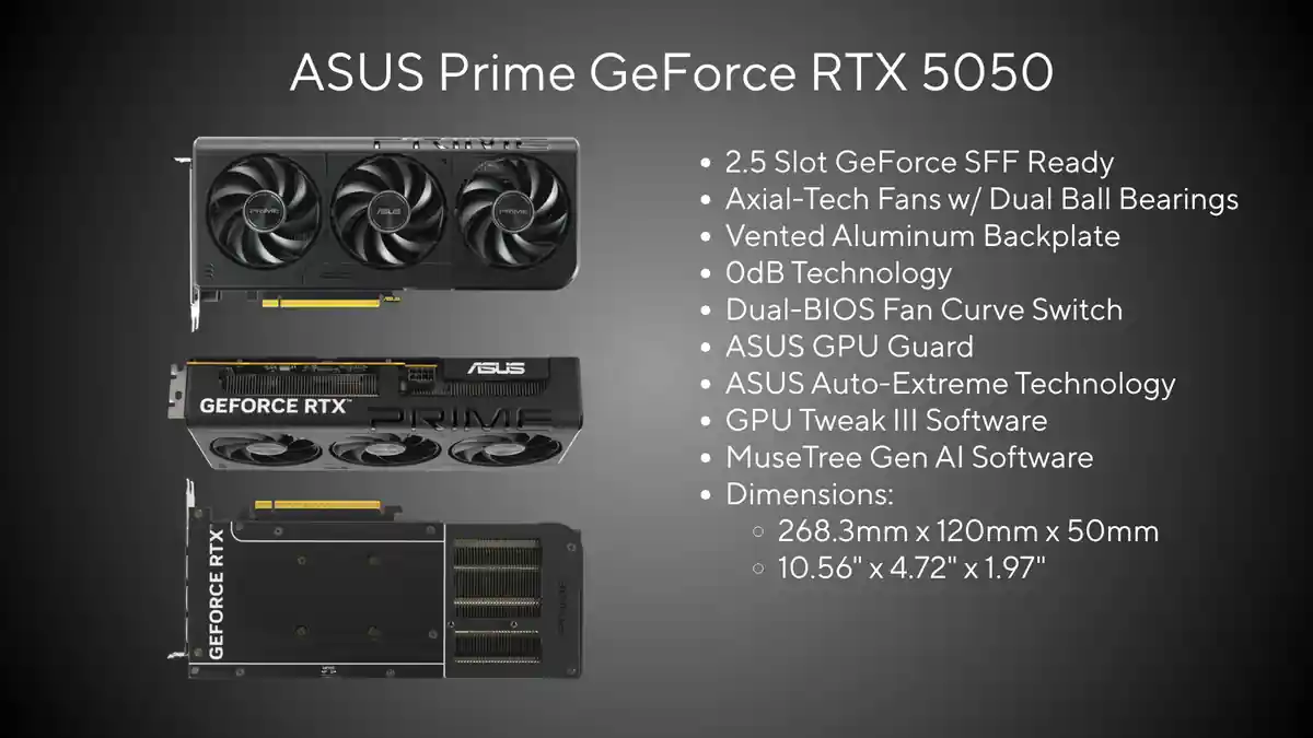 * Product page – [https://www.asus.com/us/motherboards-components/graphics-cards/prime/prime-rtx5050-8g/](https://www.asus.com/us/motherboards-components/graphics-cards/prime/prime-rtx5050-8g/)