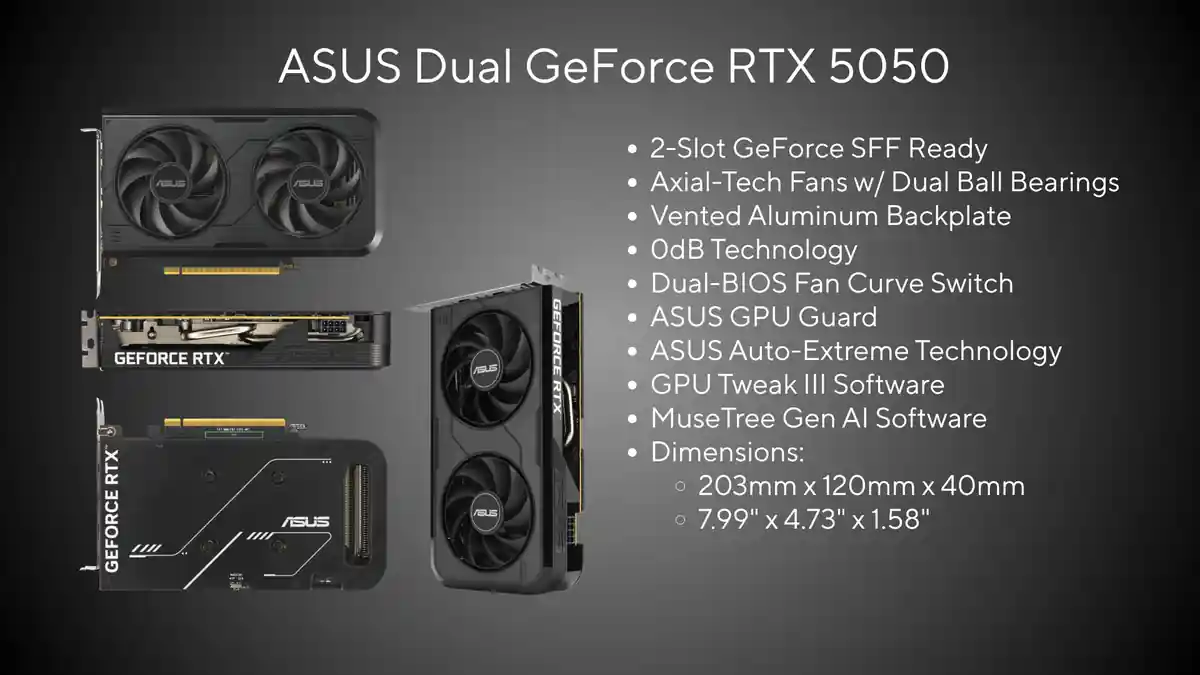 * Product page – [https://www.asus.com/us/motherboards-components/graphics-cards/dual/dual-rtx5050-8g/](https://www.asus.com/us/motherboards-components/graphics-cards/dual/dual-rtx5050-8g/)