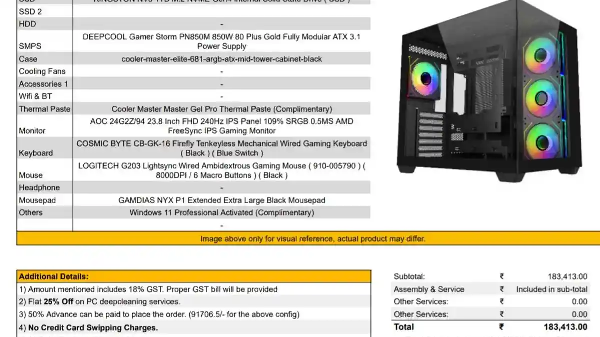 Budget : ₹1,8 Lakh incluant les périphériques mais excluant les écouteurs.