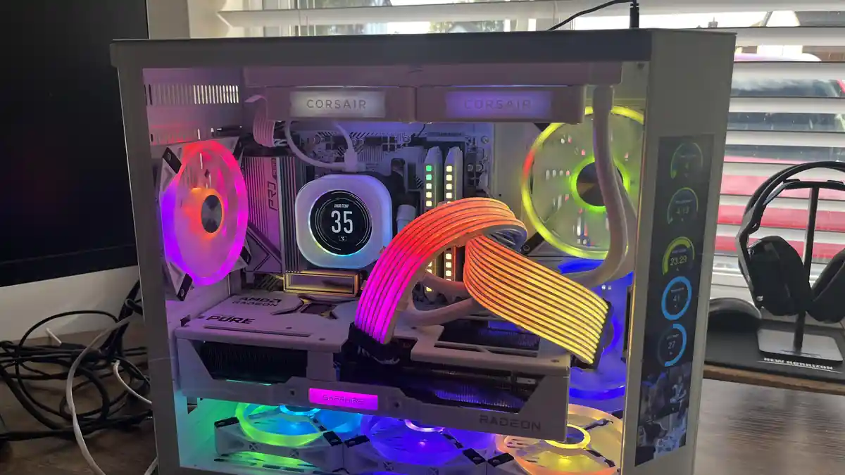 Je tenais simplement à dire à quel point je suis heureux de ma dernière configuration et à recommander ce boîtier de Ionz. J’étais satisfait de mon boîtier Corsair 280X Crystal Matx jusqu’à ce que mon alimentation électrique explose, emportant avec elle mon SSD M.2, ma carte mère et ma fidèle RTX3070 ! Le refroidissement liquide Corsair (H100i 240 mm) a également rendu l’âme. Heureusement, mon fidèle 5800XD était toujours en vie, ainsi que ma RAM et mes ventilateurs Corsair. La nouvelle configuration est la suivante :