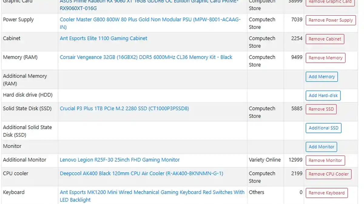 Le processeur (Ryzen 5 9600X) et la carte graphique (RX 9060 XT) sont fixes et je ne les changerai pas. Pour le reste des composants, je veux simplement le meilleur FPS pour l’argent. Je m’en moque des LED RGB, de l’esthétique ou de l’apparence élaborée.