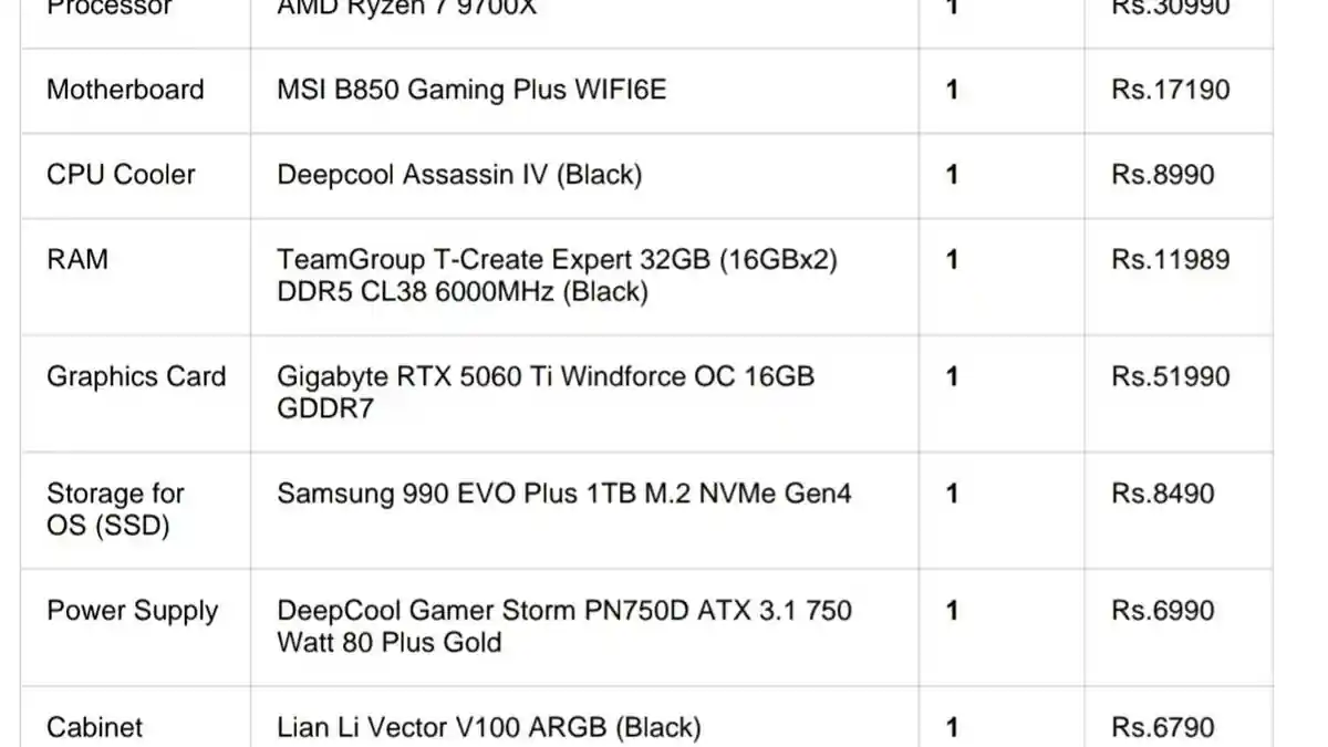 Ma priorité absolue pour la configuration du PC est la productivité et le travail en freelance, notamment le multitâche fluide, le montage, le rendu et la programmation. Ma seconde priorité est le jeu, où je souhaite jouer à des titres AAA axés sur l’histoire en paramètres élevés. Je suis encore un peu confus entre la NVIDIA 5060 Ti 16GB et l’ASRock RX 9070 XT. J’ai choisi NVIDIA pour ses fonctionnalités ; j’ai entendu dire qu’elle est meilleure pour le montage vidéo et la conception graphique.