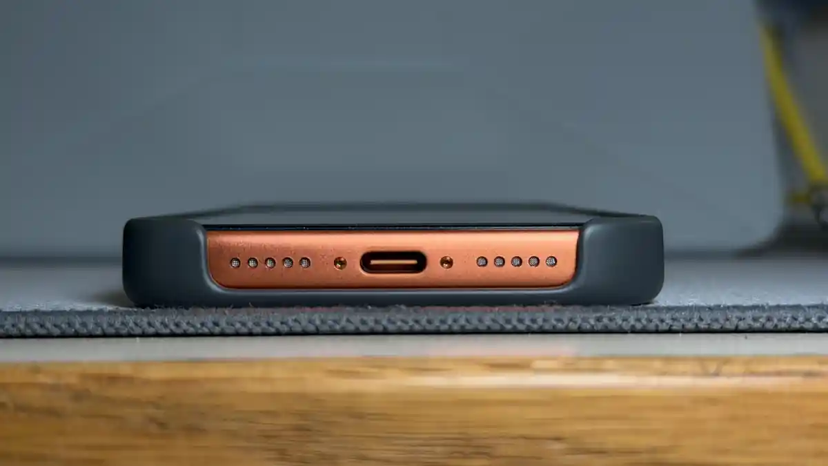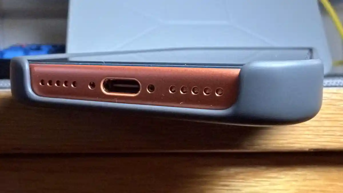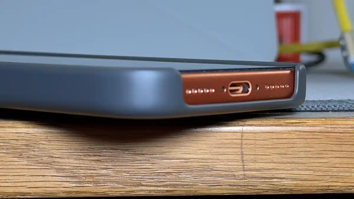 J’aime personnellement le fond entièrement plat, percé, qui me rappelle les anciennes coques d’iPhone et est également très pratique lorsqu’on utilise des câbles USB-C épais, comme ceux que l’on utilise pour transférer des données entre des SSD et des câbles Thunderbolt. Cela donne aussi une meilleure prise en main lorsque votre petit doigt repose sur le bas.