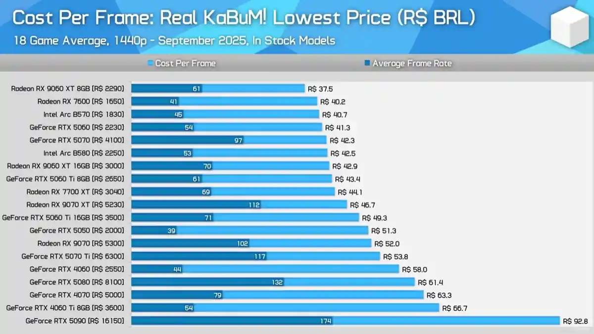 Coût GPU : Prix par cadre au Brésil Patricia Price • octobre 15, 2025 • in CPU • last activity 15 hours ago https://preview.redd.it/xt6ati3xlipf1.png?width=1226&format=png&auto=webp&s=6c51cbe0e30747738f74616ac881e426cf85c33c #cartes graphiques #Comparaison prix #Configuration PC #Coût GPU #Marché brésilien #Matériel informatique #Prix Brésil #Septembre 2025