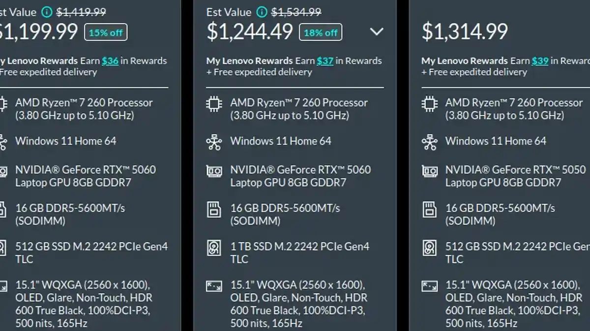 Désolé si c’est une question bête mais pourquoi y a-t-il une différence de prix entre ces 3 modèles ? Je comprends que le deuxième soit plus cher que le troisième en raison de +512Go de SSD. Mais pourquoi le troisième est-il plus cher que les deux autres modèles alors qu’il dispose d’un rtx5050 ? (Comme je le vois, les autres détails sont les mêmes) Ai-je manqué quelque chose ?