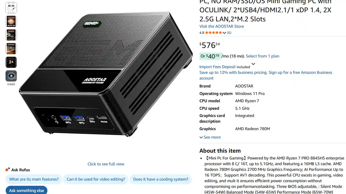 J’ai un Aoostar GEM12+ et je l’aime beaucoup. J’ai plusieurs autres mini ordinateurs tels que Beelink SER8, GMKtec NucBox K8 Plus, Minisforum UM890 Pro, et j’aime probablement le Aoostar le plus. Il fonctionne très bien, est silencieux et le prix était le meilleur parmi tous. J’utilise Fedora KDE sur le mien et cela fonctionne parfaitement.