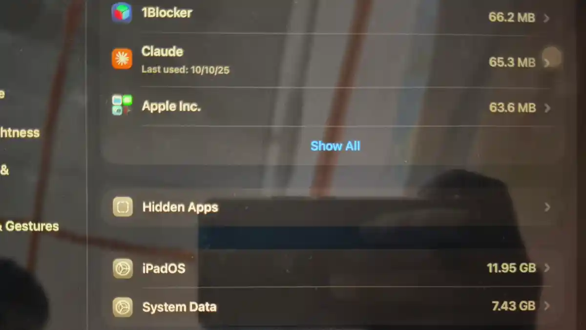 Capture d’écran 2 (en fonctionnement sur iOS 26.0.1) – Espace iPad OS utilisé – 11,95 Go