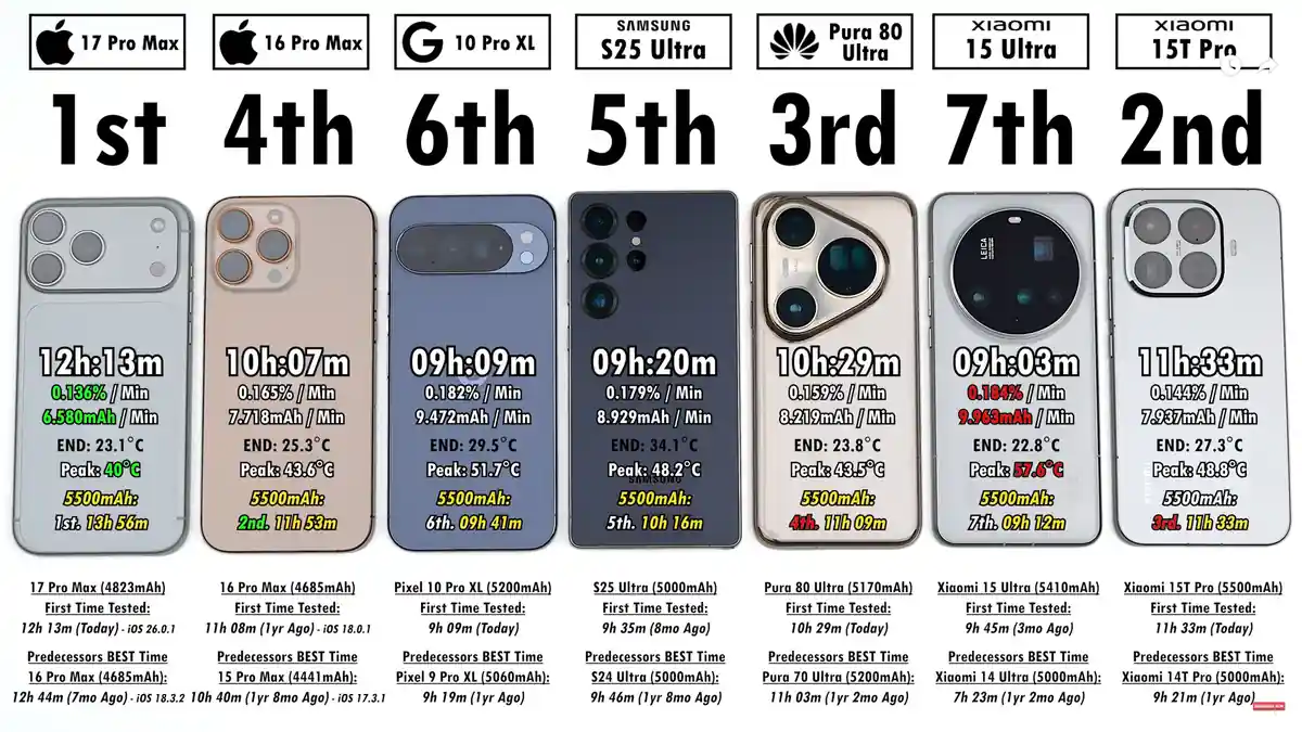 En outre, si vous regardez le score. L’iPhone 16 Pro Max a un meilleur écran allumé sous iOS 18. Mieux que l’iPhone 17 Pro Max actuel.
