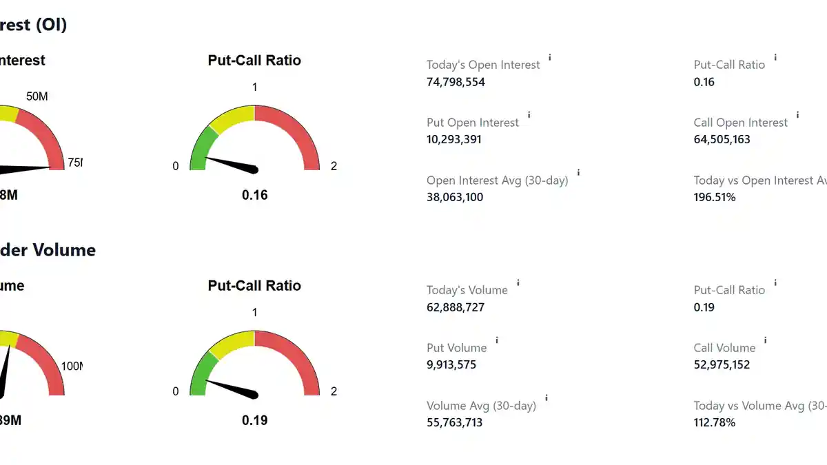 * Der spekulative Optionsfluss bleibt stark call-lastig: Das Put/Call-Volumenverhältnis liegt bei 0,19 und zeigt starkes bullisches Interesse, insbesondere im Technologiesektor (Options Market Flow, heute).