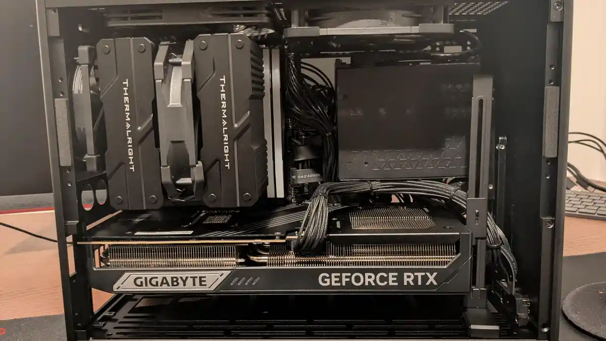 1. Ajouter 2×140 mm de ventilateurs d’entrée au bas sous la carte graphique