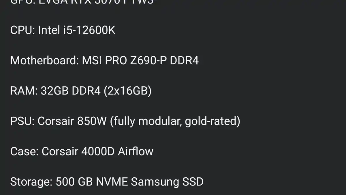 Le 3070 offre encore des performances correctes, mais avec cette boîte et ce PSU, il y a encore beaucoup d’espace pour le mettre à niveau plus tard. Ce serait bien d’avoir plus de VRAM, mais si vous jouez à des jeux compétitifs en mode performance, cela sera suffisant pendant longtemps.