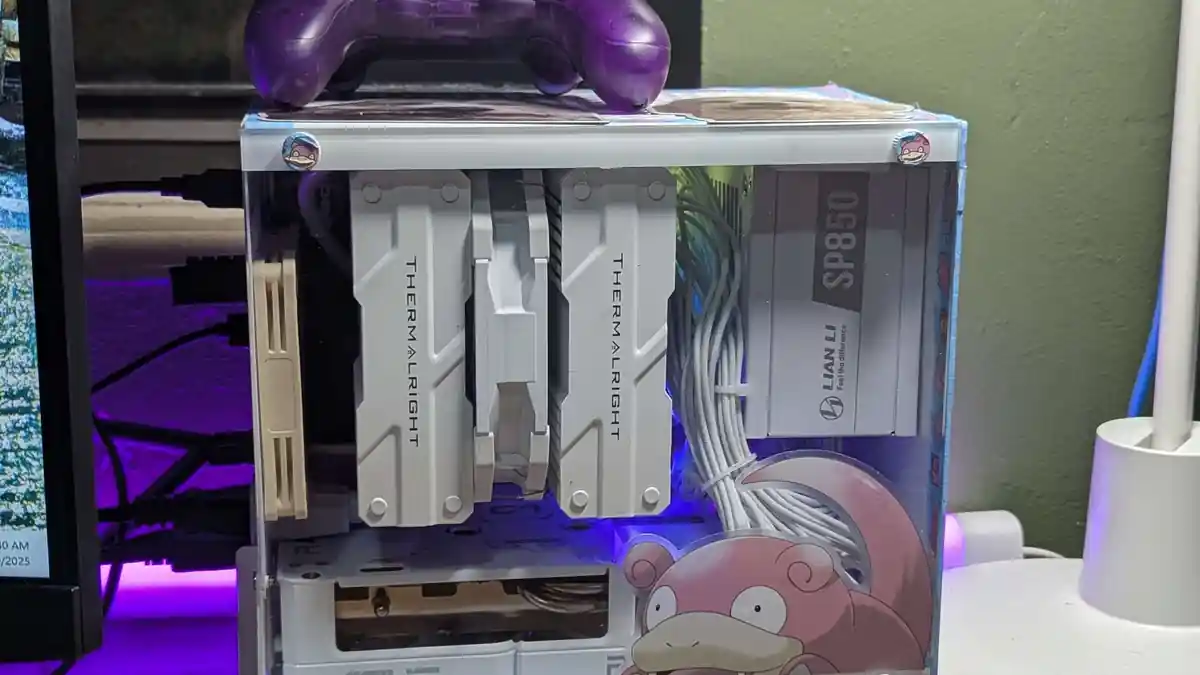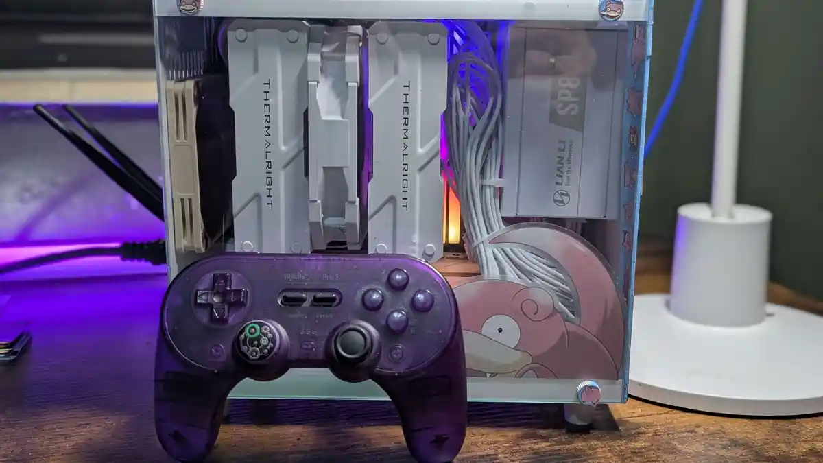 La qualité de fabrication est top, tout comme l’emballage. Le boîtier comprenait un excès de vis et un tournevis assez bon. Le boîtier semble très solide. La construction était simple et agréable, bien qu’elle ait nécessité un peu de planification ; la carte graphique et l’alimentation ont particulièrement demandé un effort. Les températures ont été excellentes, malgré l’absence d’une configuration d’entrée et d’un seul ventilateur d’extraction arrière. Enfin, quelques rubans Slowpoke Washi et ma propre collection pour terminer la construction. 8BitDo Pro 2 pour l’échelle.