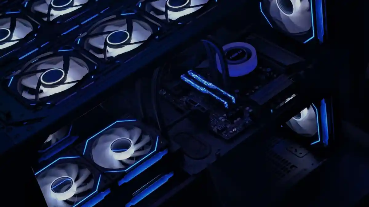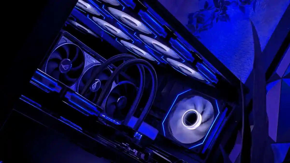 8 x 120 mm en extraction sur le dessus, 4 x 120 mm en admission sur le fond, 2 x 140 mm en admission à l’arrière, 1 x 250 mm en admission à l’avant et 4 x 120 mm en configuration push/pull. Tous les ventilateurs d’admission et d’extraction fonctionnant à environ 250 tr/min, le système est silencieux tout en offrant un flux d’air volumineux. Très impressionné par le Galahad II Lite Performance, la conception de la pompe est excellente, le bloc est très robuste. Il n’y a définitivement rien de « Lite » dans ce refroidissement liquide. 44°C en jeu avec un 9800X3D en undervolt à -30, en utilisant la pâte Thermal Grizzly Duronaut.